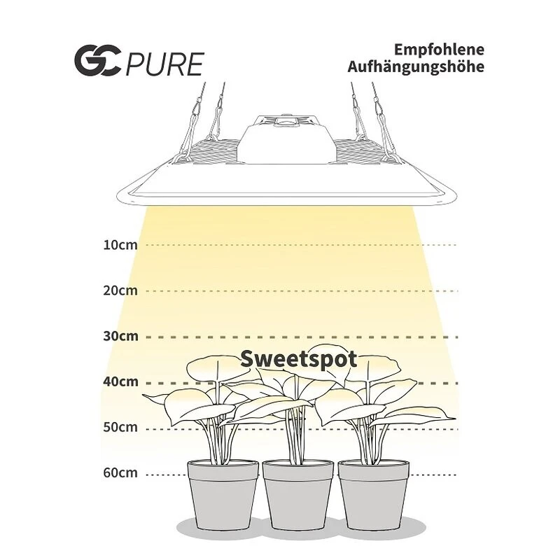 I modelli GC-Pure sono stati sviluppati appositamente per le tende da coltivazione quadrate più diffuse, per garantire un apporto di luce ottimale alle tue piante. Grazie alla forma quadrata delle lampade, sono ideali per le aree quadrate. L’area di illuminazione ideale è di 60 x 60 cm.