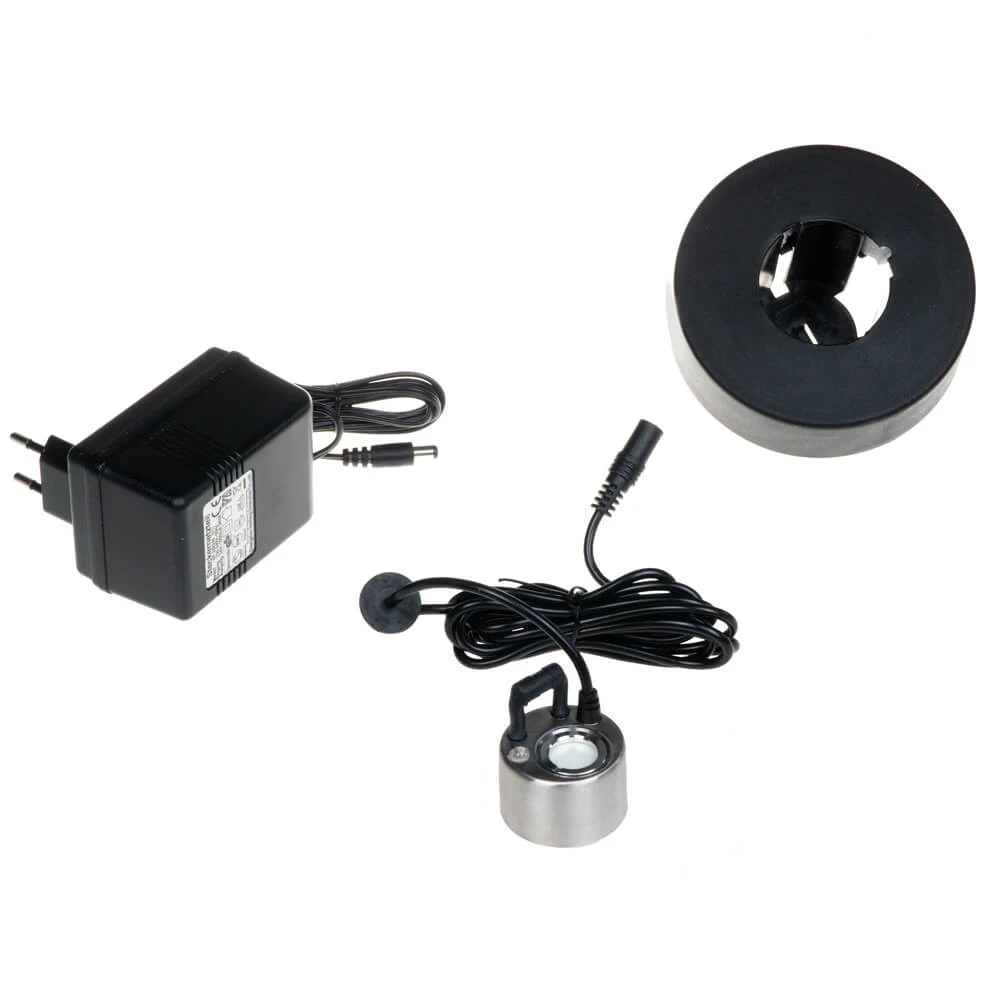 L’involucro con rivestimento speciale può essere pulito facilmente da eventuali incrostazioni di calcare. Il nebulizzatore è stato ideato appositamente per l’impiego all’interno o all’esterno. Questo umidificatore a ultrasuoni può essere impiegato in molti modi, per esempio nei laghetti in giardino, negli acquari, nelle fontanelle da tenere in casa, nelle decorazioni floreali o nelle piscine. Con l’anello galleggiante si può utilizzare il nebulizzatore in grandi cisterne di ogni dimensione. Con un ventilatore potrete distribuire il vapore finissimo in modo ottimale nell’ambiente.
