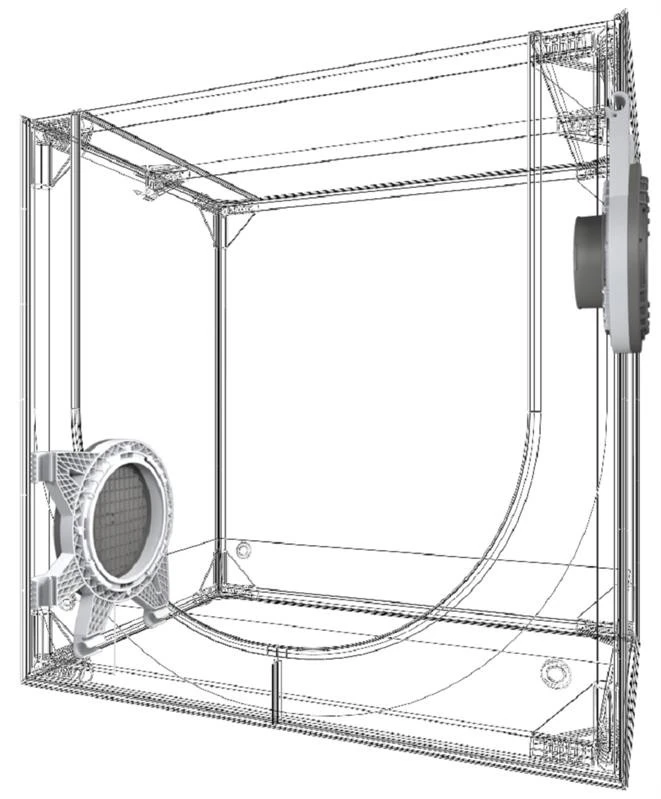 Grow room station realizzata con un Mylar M210D molto riflettente. Struttura realizzata con pali in acciaio Q195 da Ø16mm.