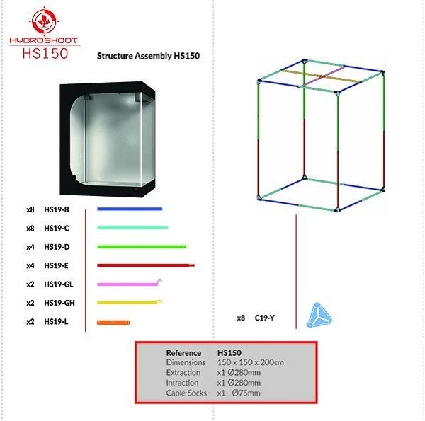 Le Growbox della serie Hydro Shoot della Revision R2.00 sono molto convenienti e quindi ideali per chi è alle prime esperienze con il giardinaggio o per chi desidera risparmiare, ma possono essere utilizzate anche come box aggiuntive per i professionisti del giardinaggio. Pur essendo a buon prezzo, offrono un’ottima qualità e quindi un buon rapporto prezzo-qualità. La porta si apre e si chiude con un’apertura a cerniera e può essere arrotolata e fissata. Per un’illuminazione ottimale di questa growbox consigliamo 1x lampada HPS da 1000 Watt/ 1x LUMATEK ZEUS 600W Pro 2.9 LED Full Spectrum.
