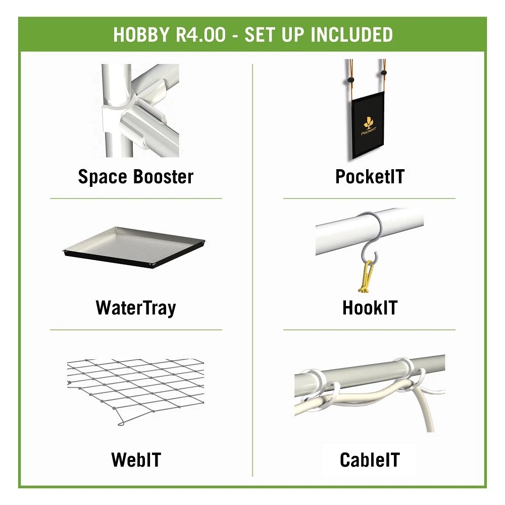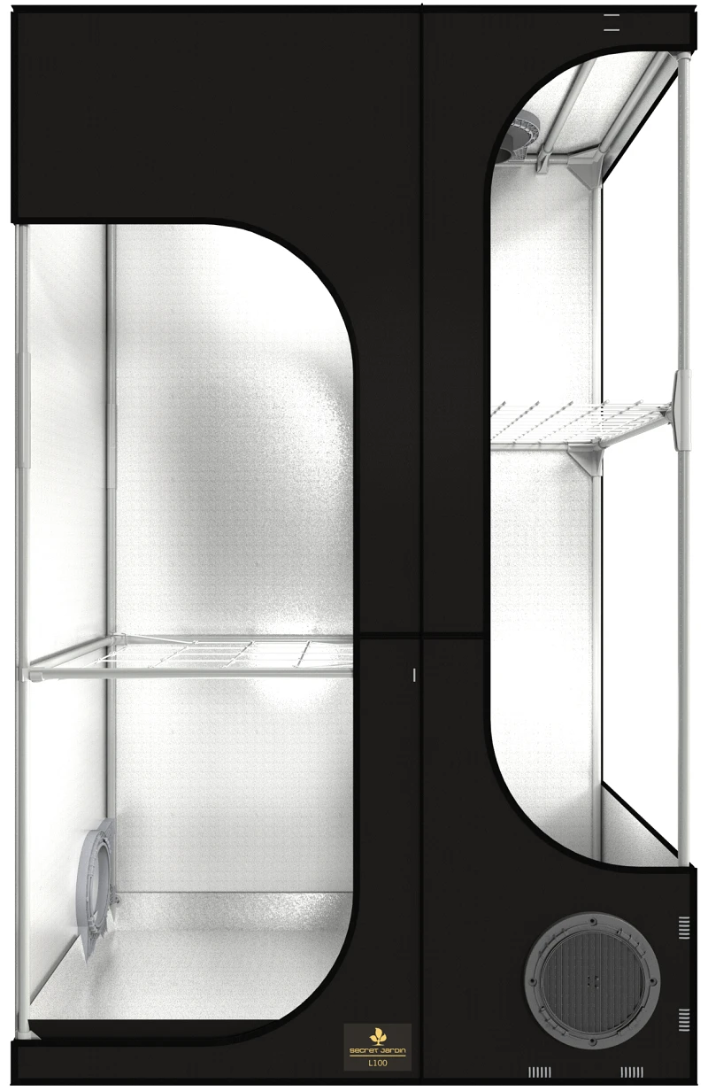 La SECRET JARDIN LODGE è l’ultimissimo prodotto della serie Revision 4.0 ed è strutturato in modo da poter essere utilizzato sia per la fioritura che per la fase di crescita delle piante oltre che, parallelamente, per la coltivazione di talee. Il sistema di illuminazione consigliato dal produttore per il modello più grande è una lampada HPS da 150 Watt (con Cooltube 1x HPS da 250W) e per i modelli più piccoli 1 lampada CFL da 55 Watt.